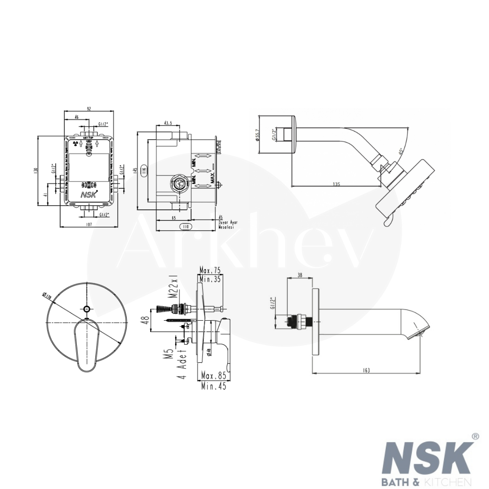 Bu set; NSK ankastre banyo bataryası, sıva altı iç set, yüzey seti ve banyo çıkış gagası uyumunu tek pakette sunarak modern banyo projelerinde estetik, fonksiyon ve konforu bir araya getirir.
