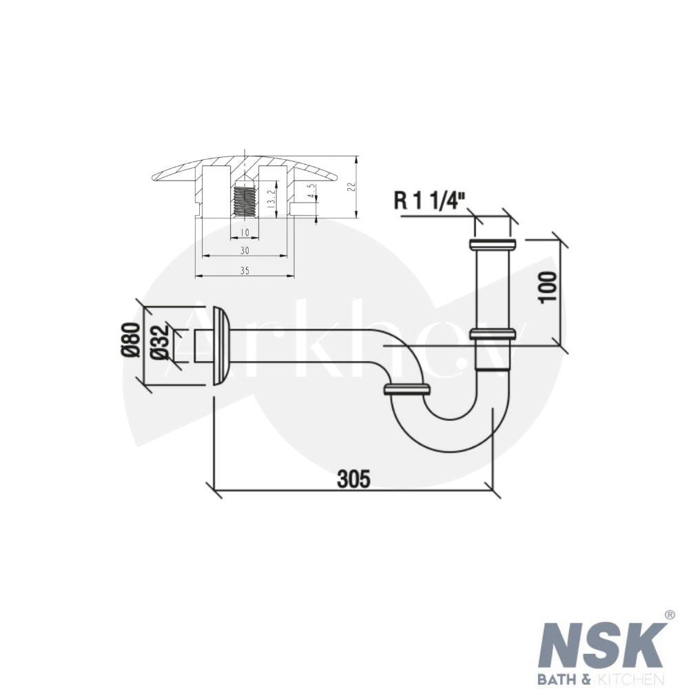 Bu ürün; Click-Clack lavabo süzgeci, U-borulu lavabo sifon takımı, krom lavabo gider sistemi ve NSK ARKHEV0006 örnek koduyla modern banyo çözümleri sunar.