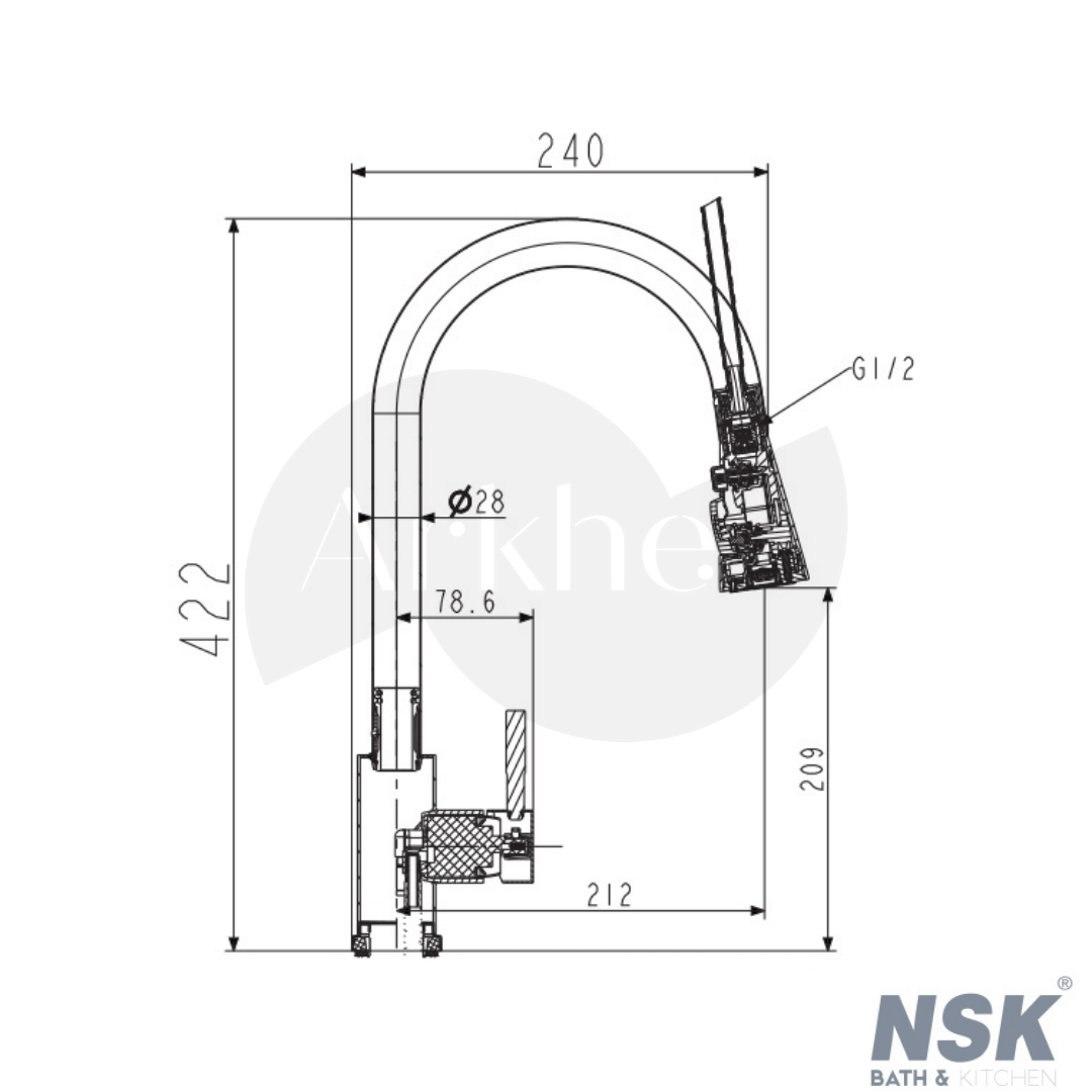 Aşağı çekilebilen (Pull-Down) sistem • Çift fonksiyonlu elcik • Paslanmaz çelik (Inox) yüzey • Profesyonel kuğu boyun • NSK Türkiye Garantisi