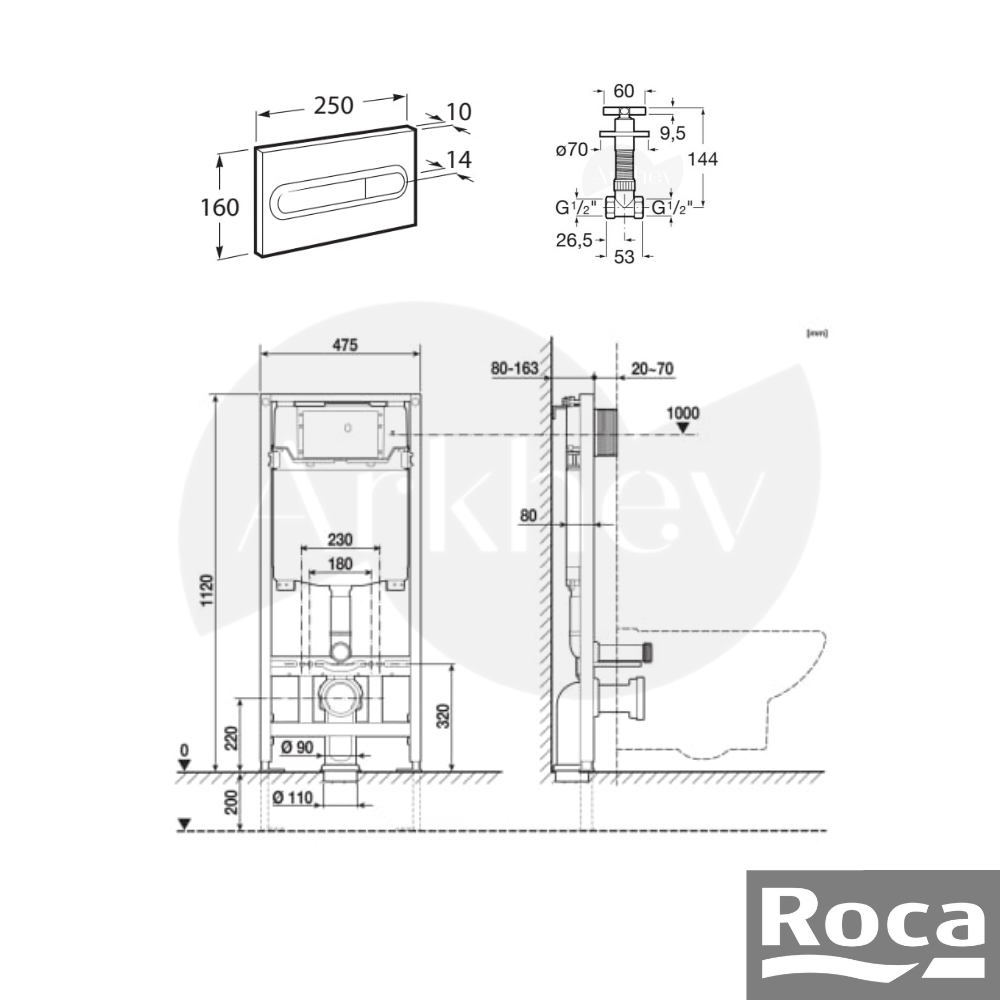 🚽 ROCA Alçıpan Tipi Gömme Rezervuar Seti – Krom Basma Butonu ve Stop Valf Dahil – ARKHEV0012