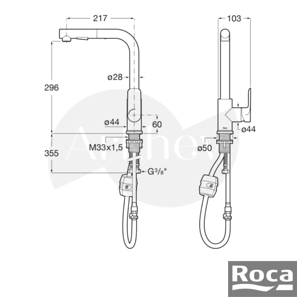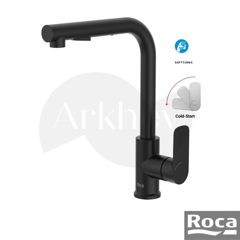 💧 ROCA Cala Döner L Borulu Spiralli Eviye / Mutfak Bataryası – Mat Siyah / Fonksiyonlu Elcik / Cold Start A5A856ENB0