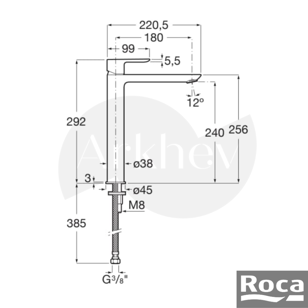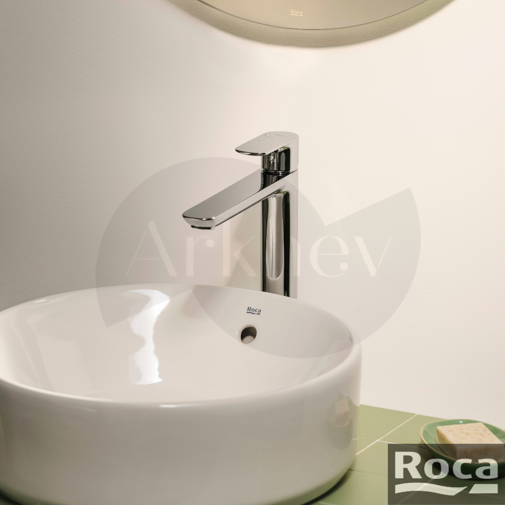 Tezgâh üstü çanak lavabolar için yükseltilmiş gövde • Cold Start enerji tasarruflu kartuş • 1/2″ esnek bağlantı • 3 bar tavsiye – 5 bar maksimum • 5 Yıl Roca Türkiye Garantisi