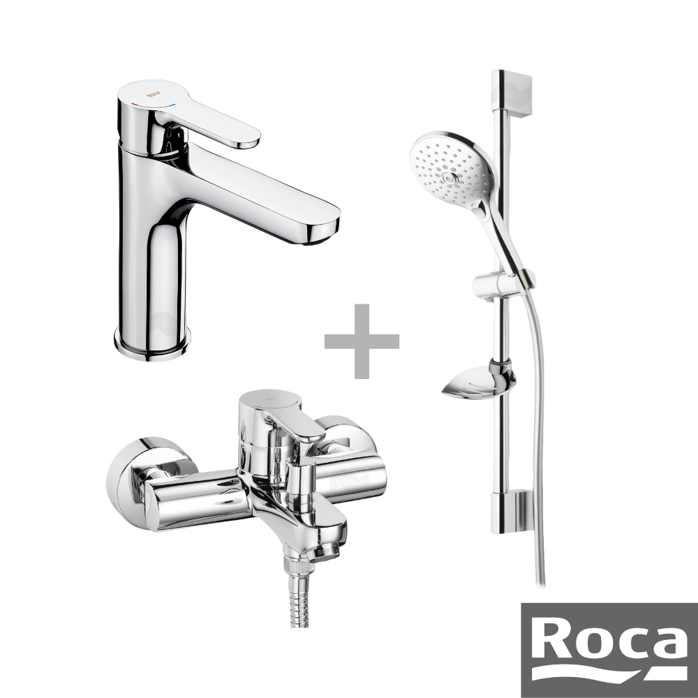 💧 ROCA L20 Lavabo + Banyo Bataryası ve Aurea 3 Fonksiyonlu Sürgülü Duş Takımı Seti – Krom A5DA509C0K