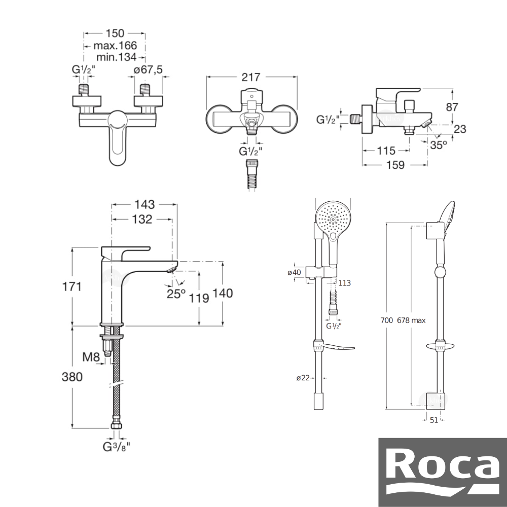 - Bağlantı ölçüsü: Lavabo ve banyo bataryalarında ½″ standart bağlantı.