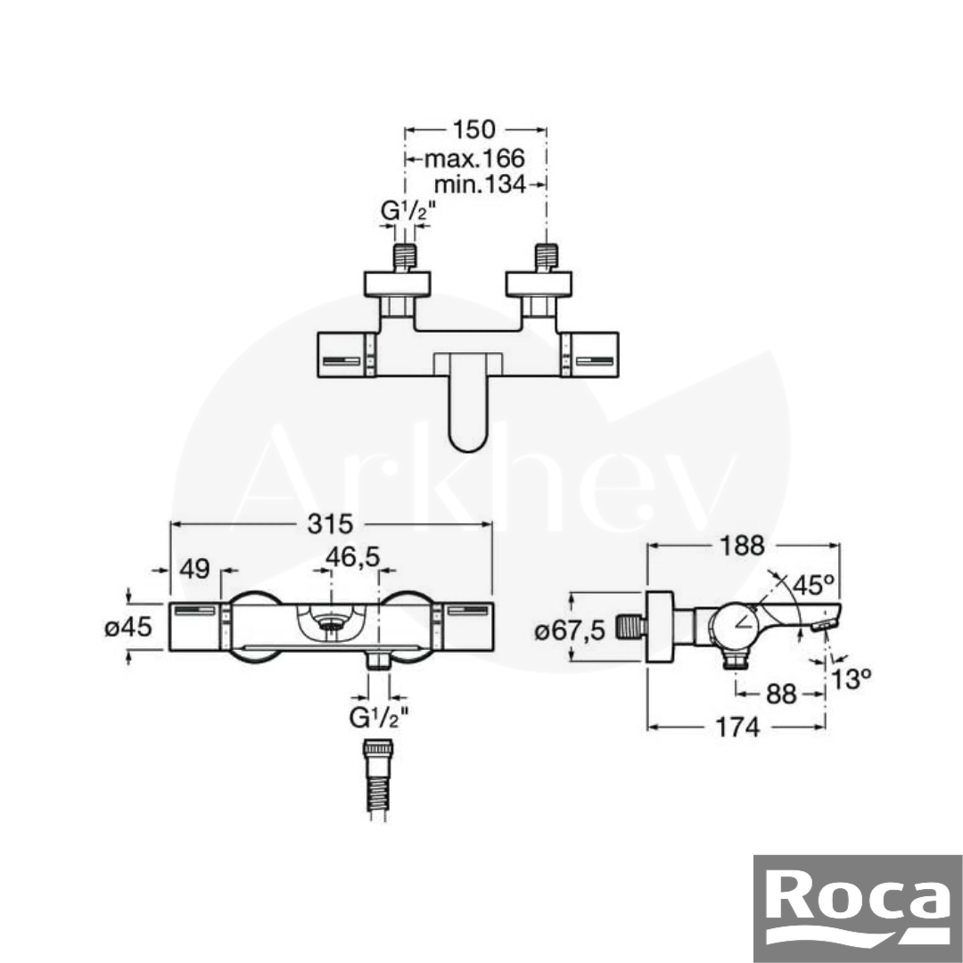 - Montaj: Duvardan standart montaj. Sıcak su girişinin mutlaka sol tarafta, soğuk su girişinin sağ tarafta olması gereklidir (Termostatik bataryaların çalışma şartıdır).