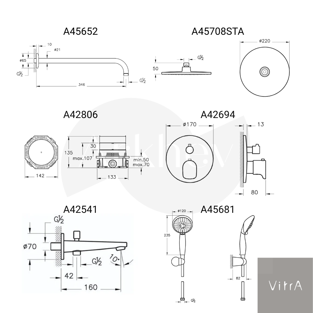 - 1 x Duş kolu ve bağlantı elemanları A45652